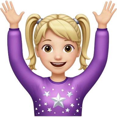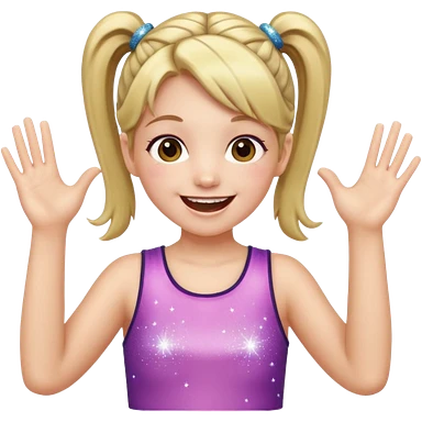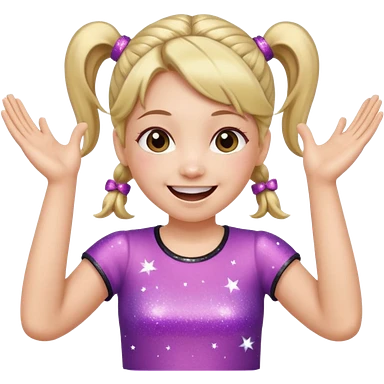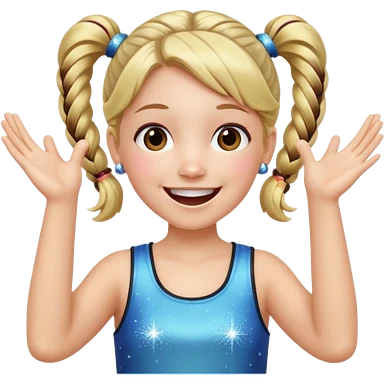 A girl with pigtails and a sparkly top, cheering with both hands raised and a huge smile. emoji
