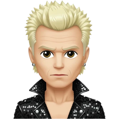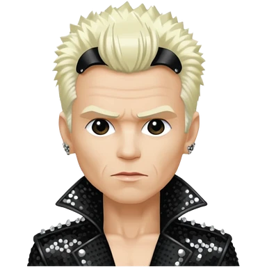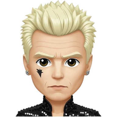 Billy Idol with platinum blonde hair, black sequin outfit emoji