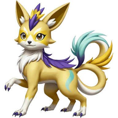 Colorful Skilled Adept Graceful Asian Painted Garurumon-Meloetta-Renamon-fusion-hybrid-creature (full body) emoji