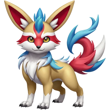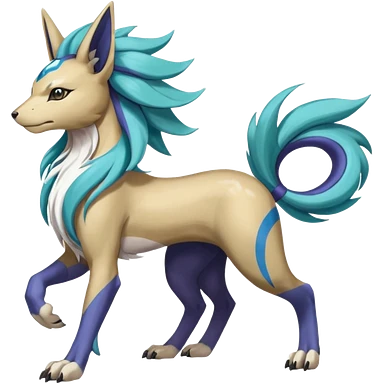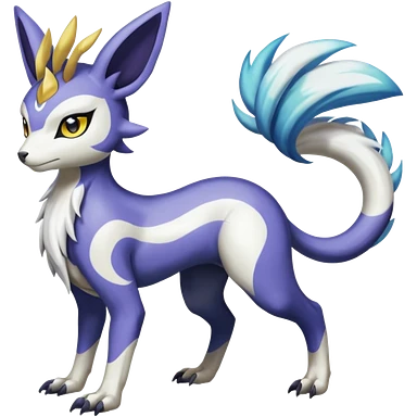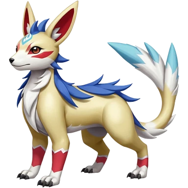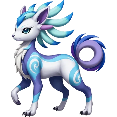 Colorful Skilled Adept Graceful Asian Painted Garurumon-Meloetta-Absol-Suicune-Cobalion-fusion-hybrid-creature (full body) emoji