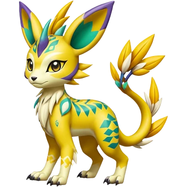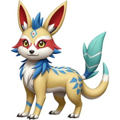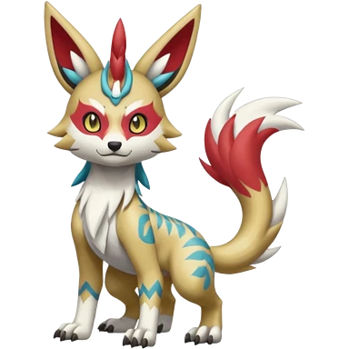 Tropical Tiny Marked Patterned Tribal Garurumon-Meloetta-Renamon-fusion-hybrid-creature (full body) emoji