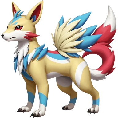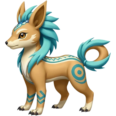 Tropical Tiny Marked Patterned Tribal WereGarurumon-Suicune-Linoone-Meloetta-fusion-hybrid-creature (full body) emoji