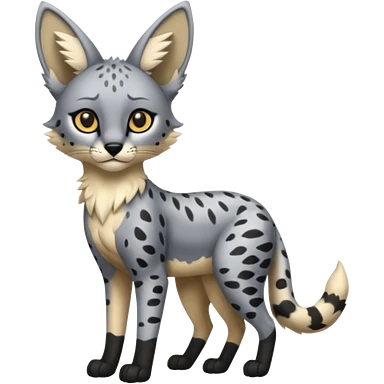 Silver-Fox-serval-hybrid-fusion-animal-creature, full body emoji