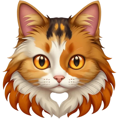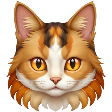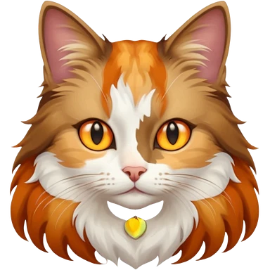 A Cat her race is persante he hair is grew and Brown and white with they eyes orange and Yellow and emoji