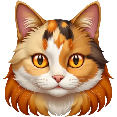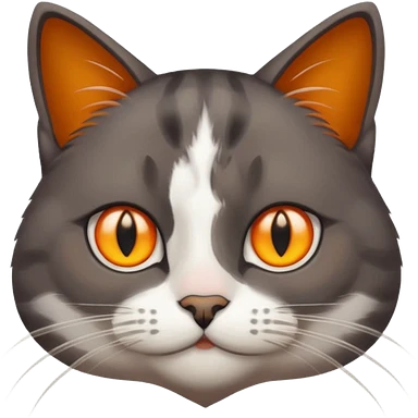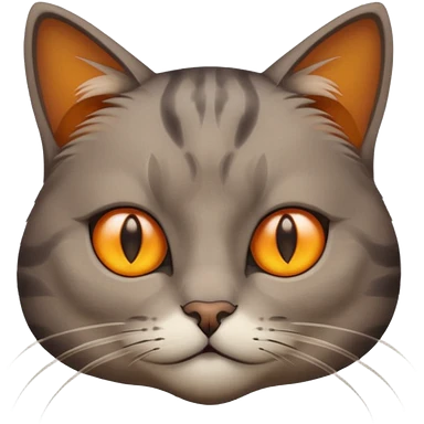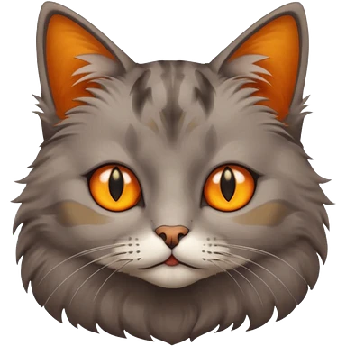 A Cat her race is persante he hair is grew and brown with they eyes orange and Yellow and emoji