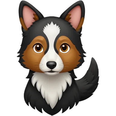 berger australien avec le corps noir et le bout de la queue et la tete blanche emoji