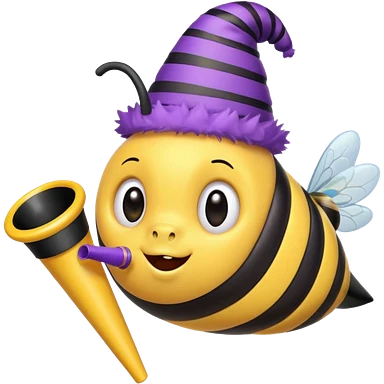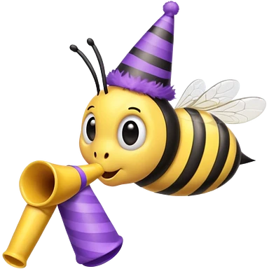 a Bee with purle Birthday Hat, Bee blowing party horn emoji