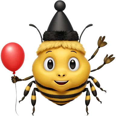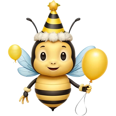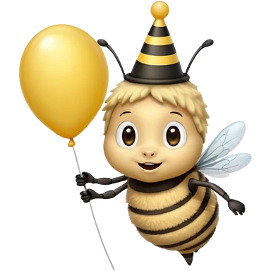 Bees with Birthday Hat, Excited bee carrying balloon emoji