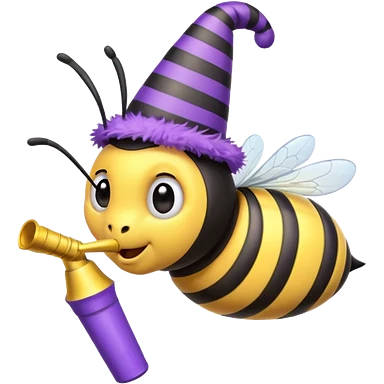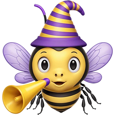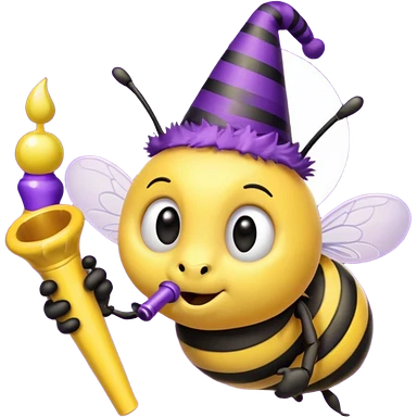 a Bee with purple Birthday Hat, emoji