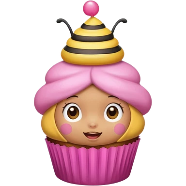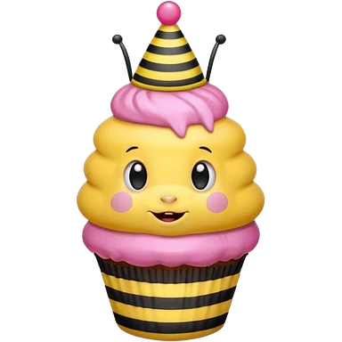 a Bee with pink Birthday Hat, Embarrassed bee with cupcake emoji