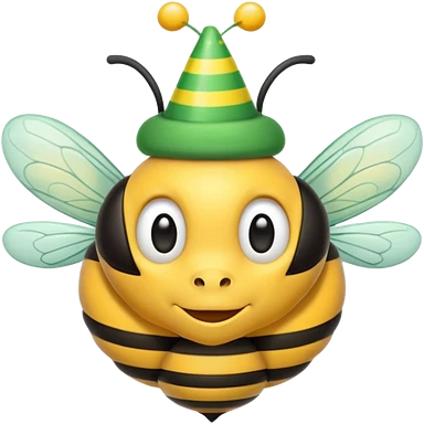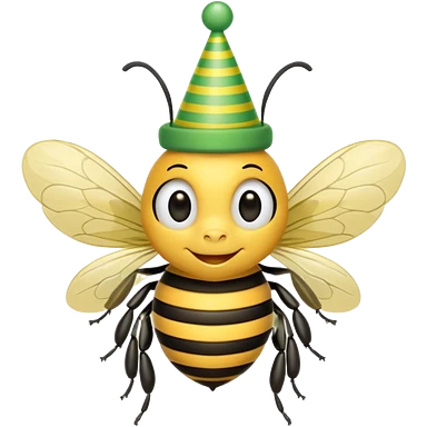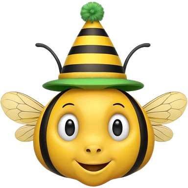 a Bee with green Birthday Hat, Happy bee with striped party hat emoji