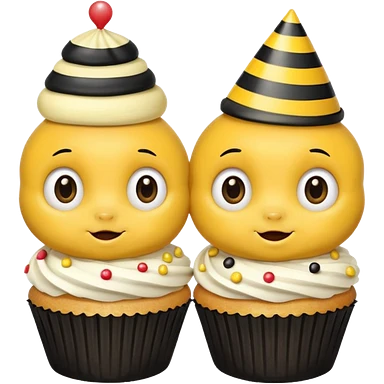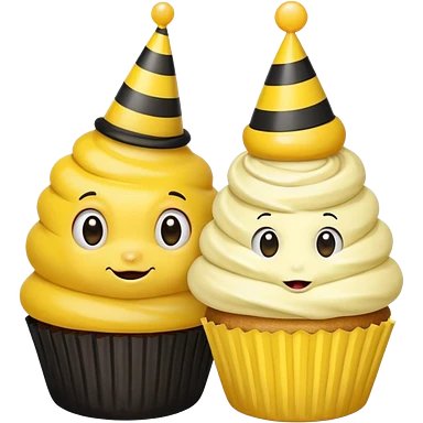 Bees with Birthday Hat, Embarrassed bee with cupcake emoji