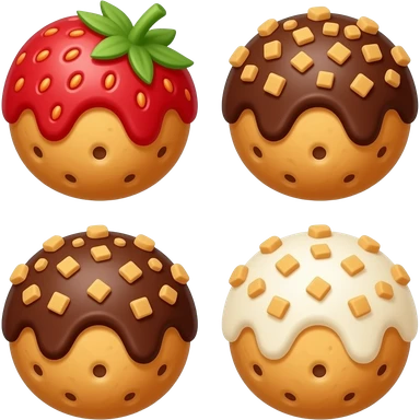 biscuit balls with strawberry/chocolate/vanilla topping + crumbs topping emoji