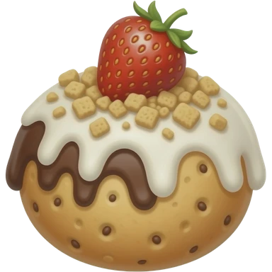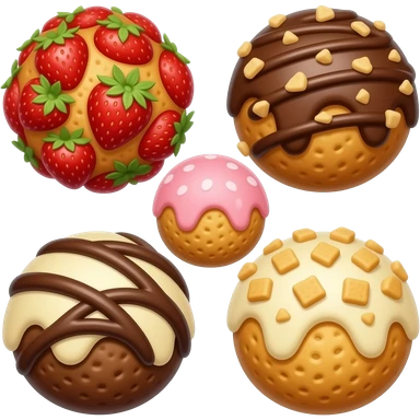 biscuit balls on cake with strawberry/chocolate/vanilla topping + crumbs topping emoji | AI Emoji Generator