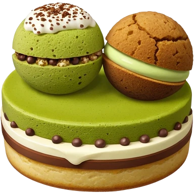 biscuit balls with matcha/chocolate/tiramisu topping + crumbs topping emoji | AI Emoji Generator