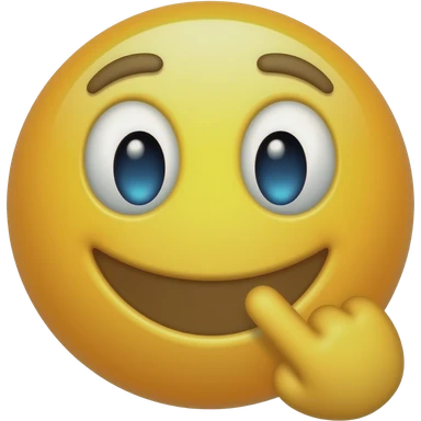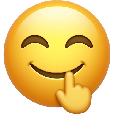 A classic 3D glossy yellow emoji face. The emoji has a playfully smirk, and is biting its own index finger in a teasing, flirty way, almost with a smile. Clean solid white background, high-quality vector 3D render. emoji
