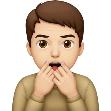 face biting nails on both hands, hands covering mouth emoji