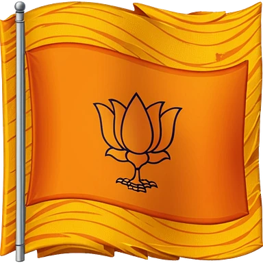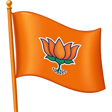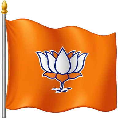BJP FLAG with white lotus and orange colour background and at the left side vertical white text asB J P with green background emoji