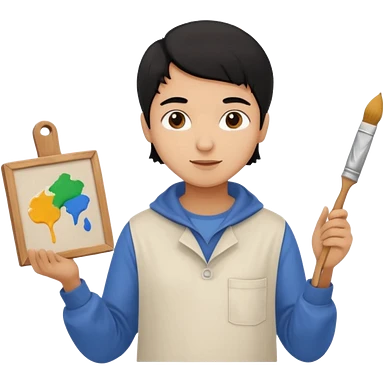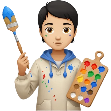 black haired light brown skinned painter with canvas emoji
