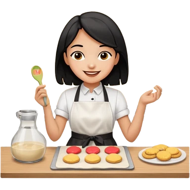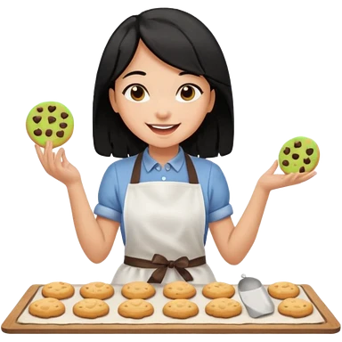 black hair light brown skinned girl making cookies emoji