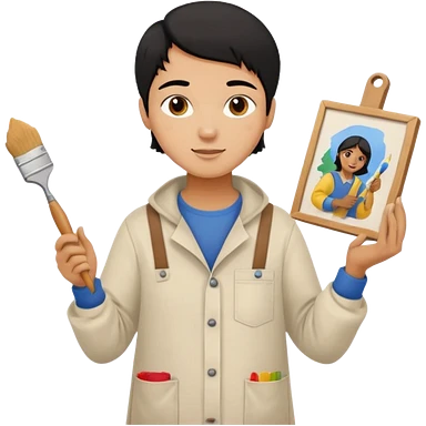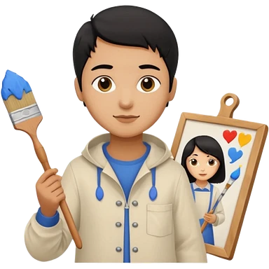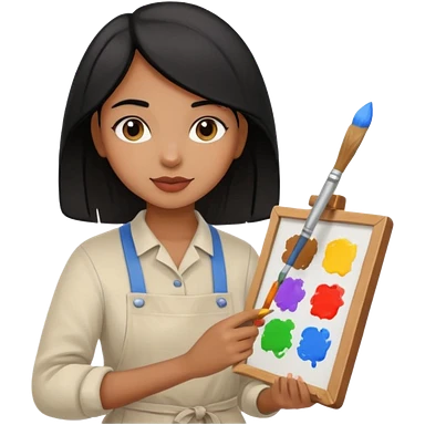 black haired light brown skinned painter girl with canvas emoji