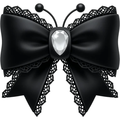butterfly, 3D emoji gothic bow, black velvet, matte black filigree, black lace trim, white gem, elegant emoji