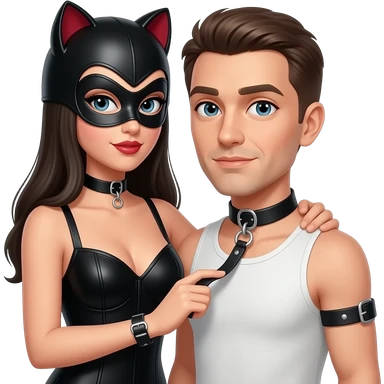 Black dominatrix teasing a White slave in chastity emoji