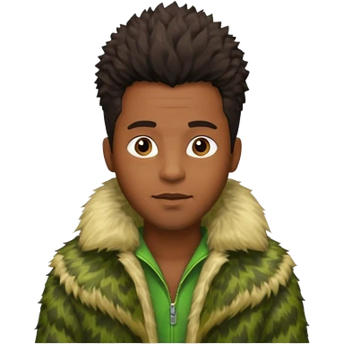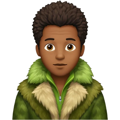 black male in green fur coat emoji