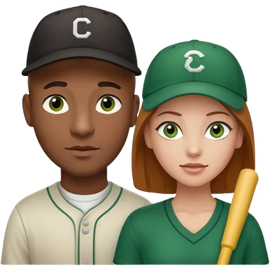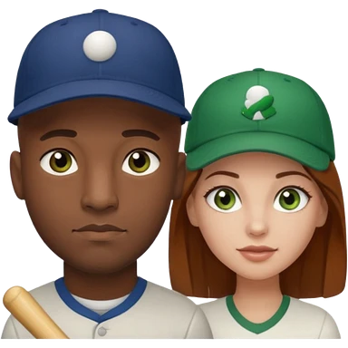 Black bald guy with a baseball cap, brown eyes & a white girl brown hair with green eyes no baseball cap emoji