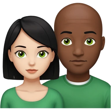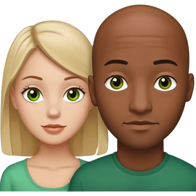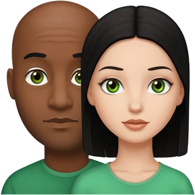 Black bald guy with brown eyes & a white girl balcky hair with green eyes emoji