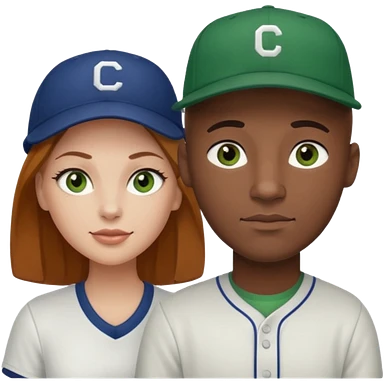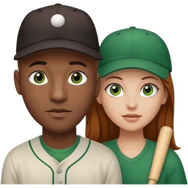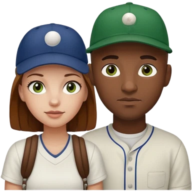 Black bald guy baseball cap white girl brown hair green eyes emoji