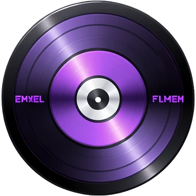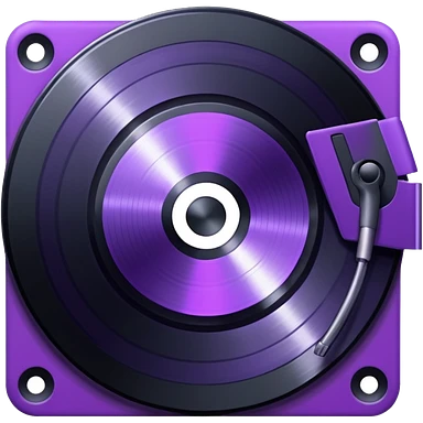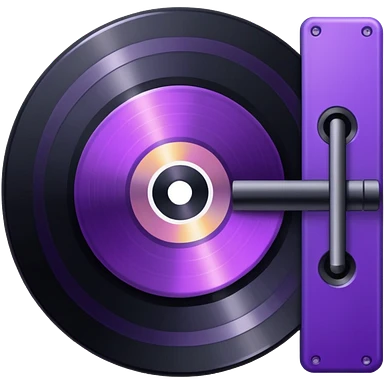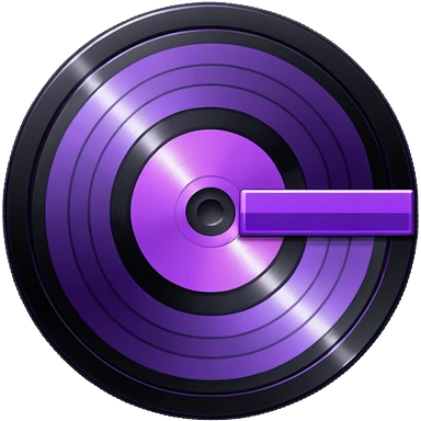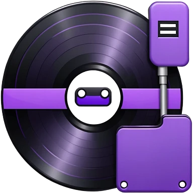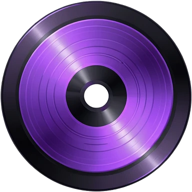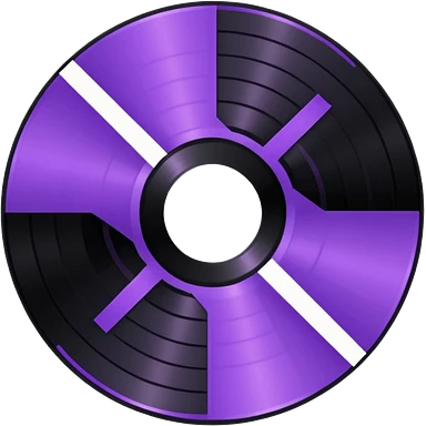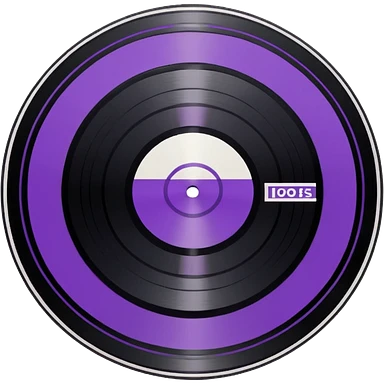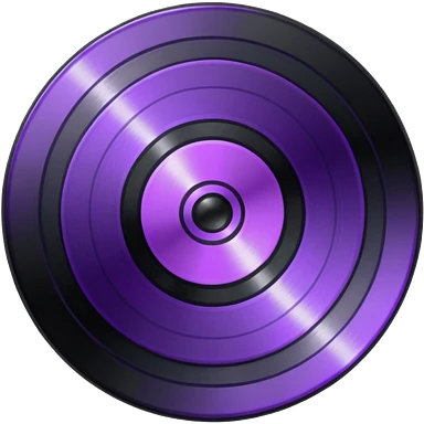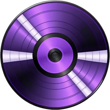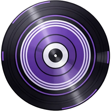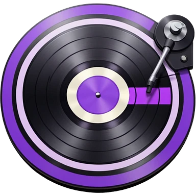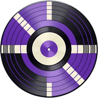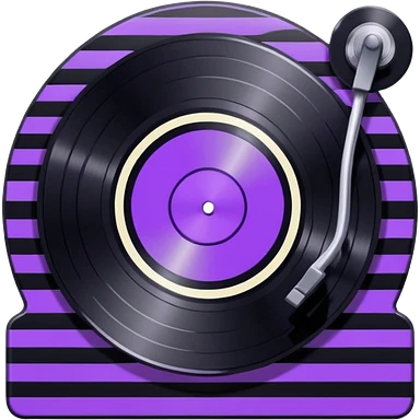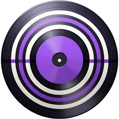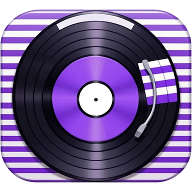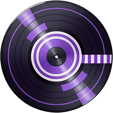 black pixel art vinyl record with a purple and white striped middle label, pixel art emoji