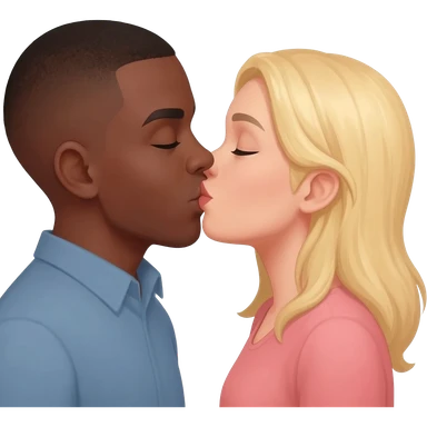 Black man with shaved head kissing blonde woman emoji