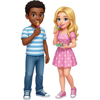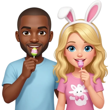 Black man & blonde girlfriend eating Easter candy emoji