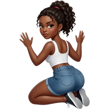 Black woman with lashes squaring hands in knees twerking with a big butt, looking back emoji