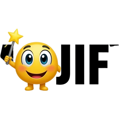 Black text "EMOJIFY" is stretched in height and width. Letter "O" is a smiley face with a magic wand. Transparent background. emoji