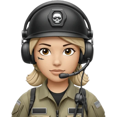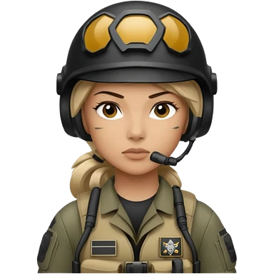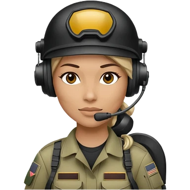 black and white drawing of a female special operations communications operator in combat gear emoji