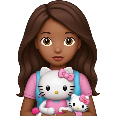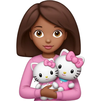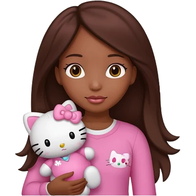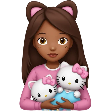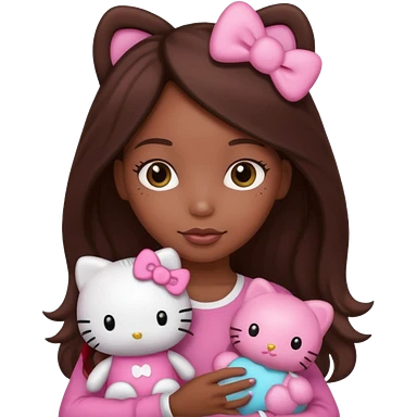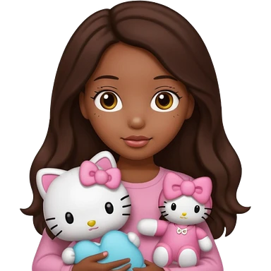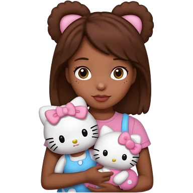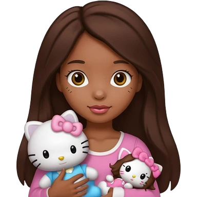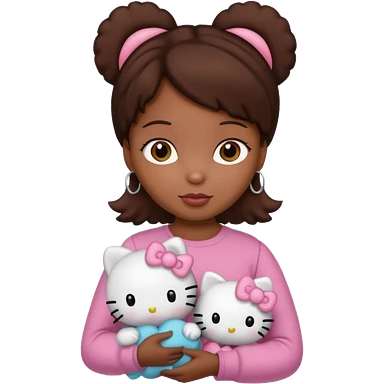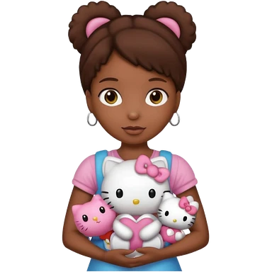 black girl with long brown hair, holding a hello kitty plushie emoji