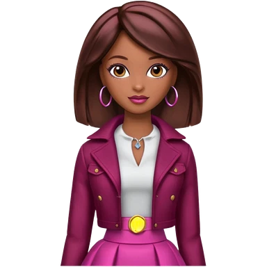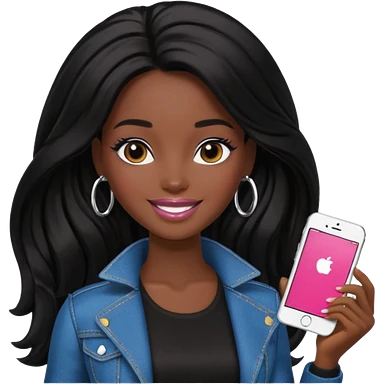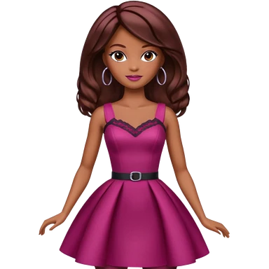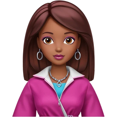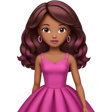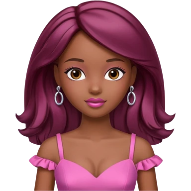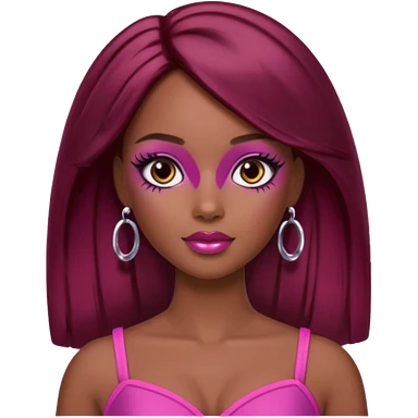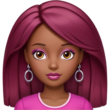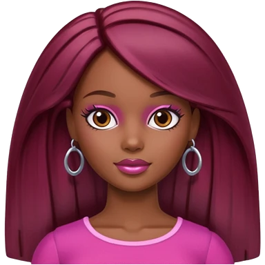 black barbie with brown hair with burgundy highlights emoji