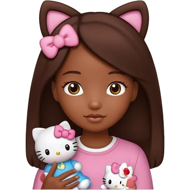black girl with long brown hair holding a hello kitty emoji