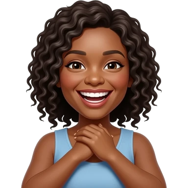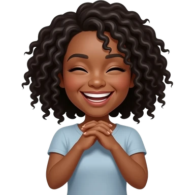 Black woman with hands crossed on their neck holding it laughing emoji