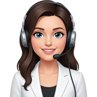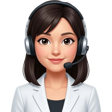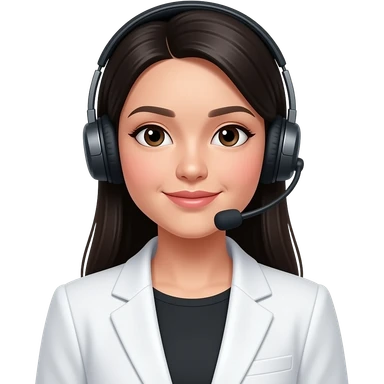 black haired asian lady with headset with mic and white blazer emoji emoji