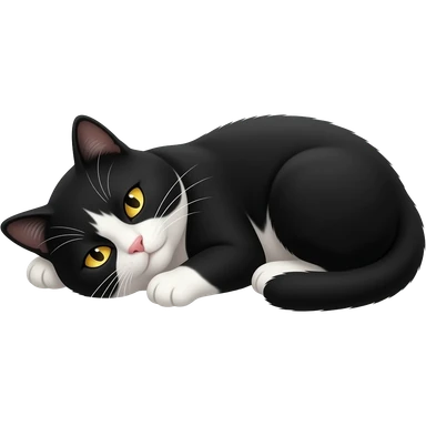 black with white cat with yellow eyes sleeping emoji