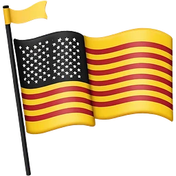 A flag with a bright red background. In the center, there is a large black five-pointed star with a gold outline. A blunted sword or spear passes vertically through the star. The flag represents Black American heritage emoji
