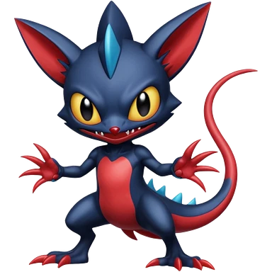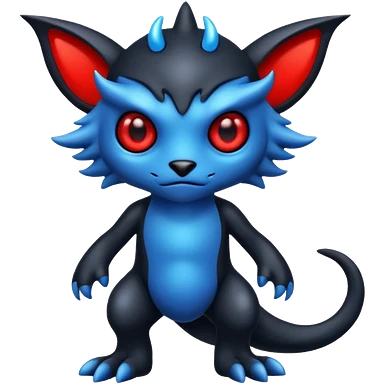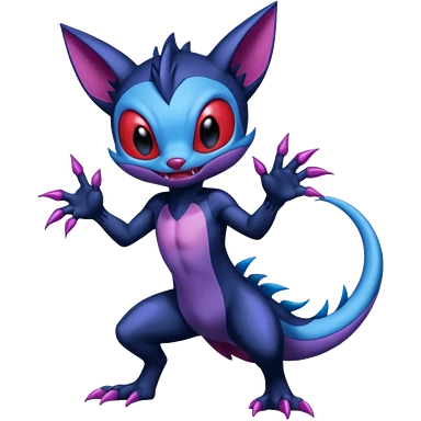 Black and Blue Venom-Stitch-Zekrom-Salandit-Sneasel-fusion, full body, with red eyes emoji