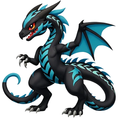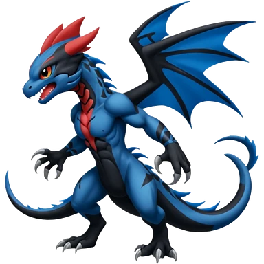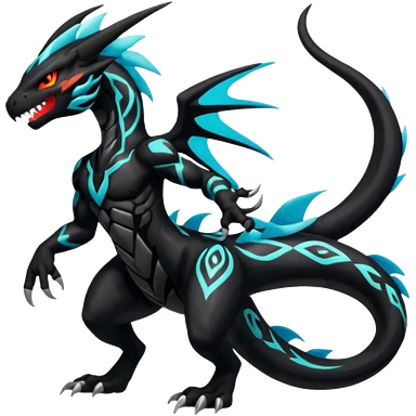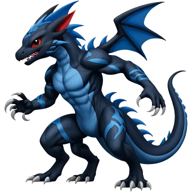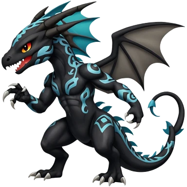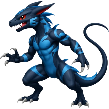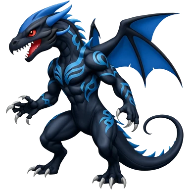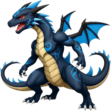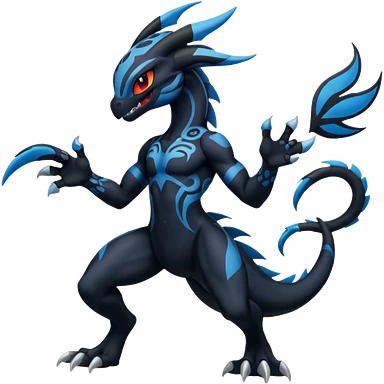 Black and Blue Venom-Charizard-Zekrom-Salandit-Sneasel-fusion, full body, tribal markings emoji