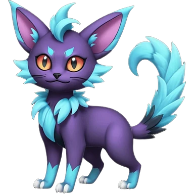 Black and cyan edgy Noivern-Noibat-Purloin-Torracat-Lykoi-Caracal-cat-Fakemon-fusion-hybrid-creature, full body emoji | AI Emoji Generator