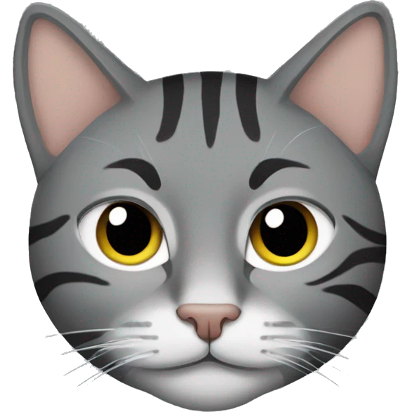 Gray tabby cat with black markings and green eyes emoji