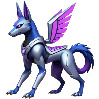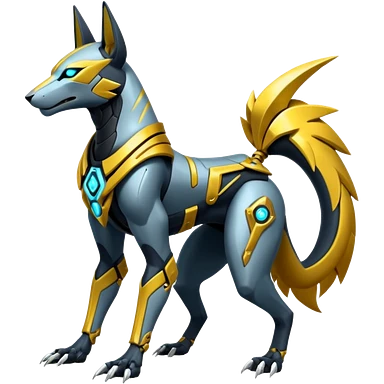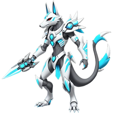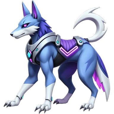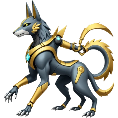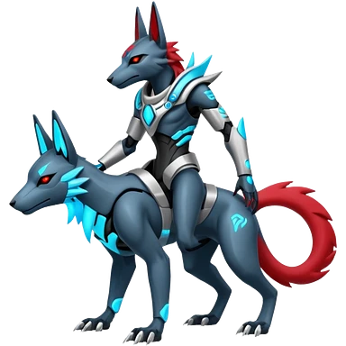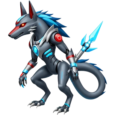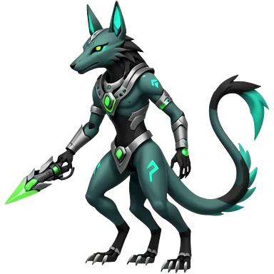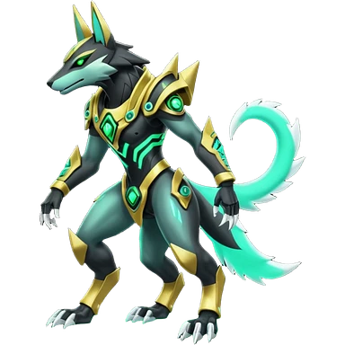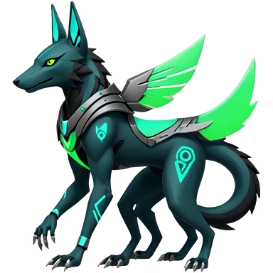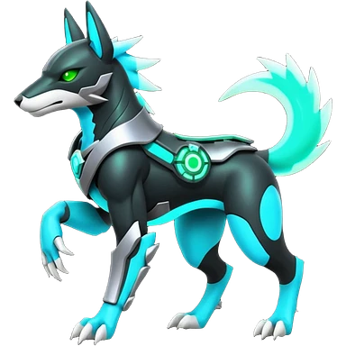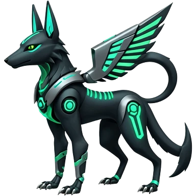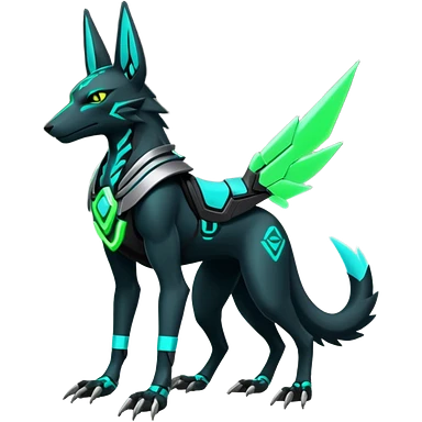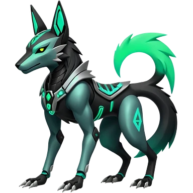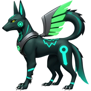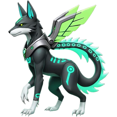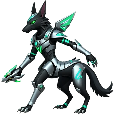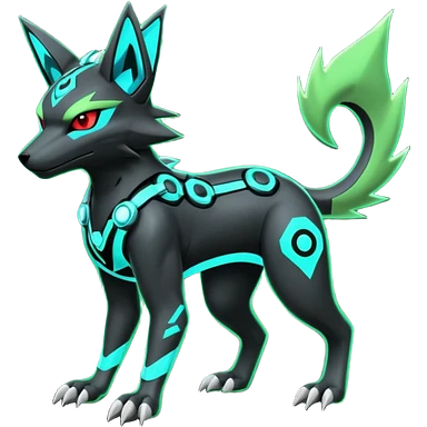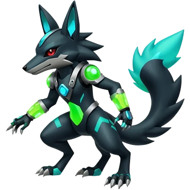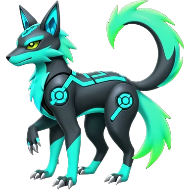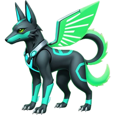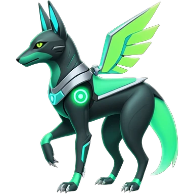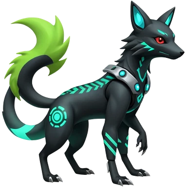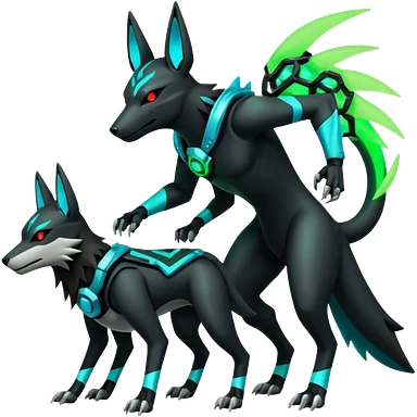 Black and green cyberpunk intricate neon glowing grey white futuristic cyborg-Zeraora-Zoroark-Umbreon-Litten-Salandit-fusion (full body) emoji | AI Emoji Generator