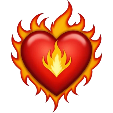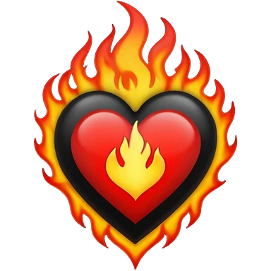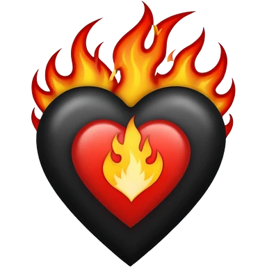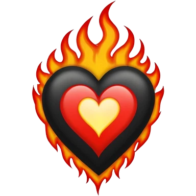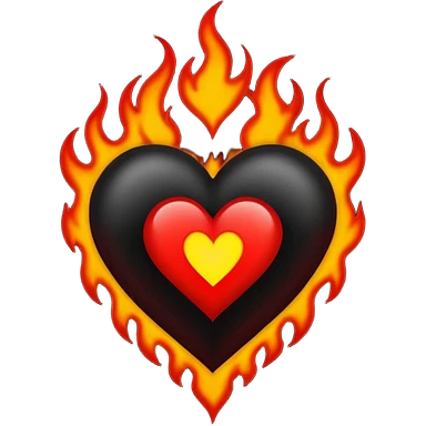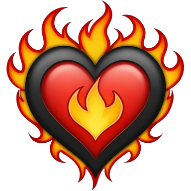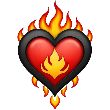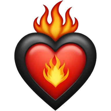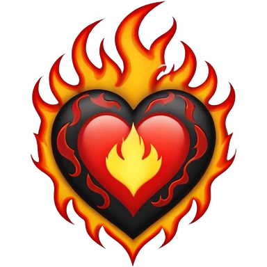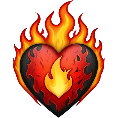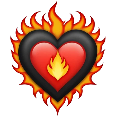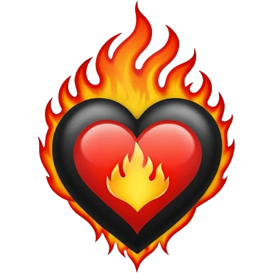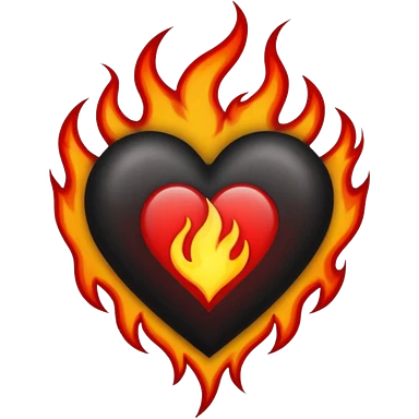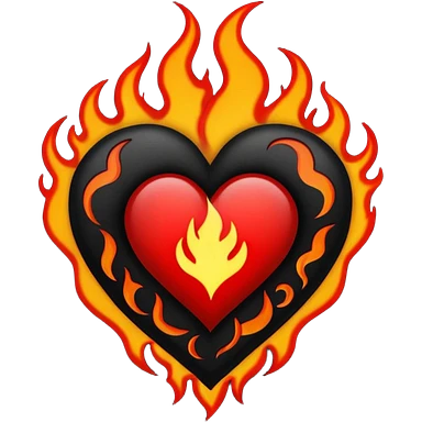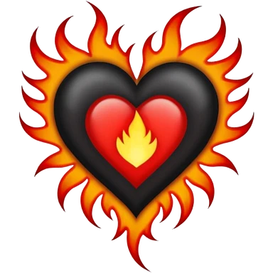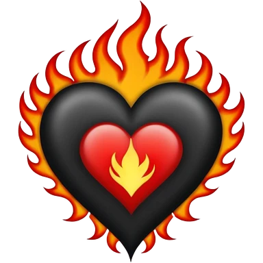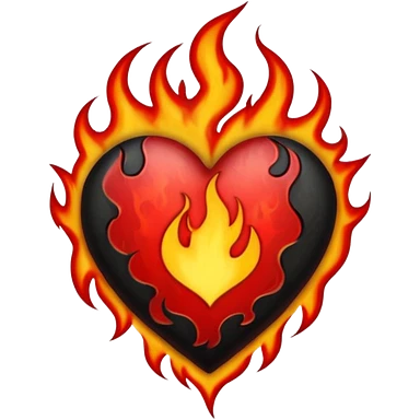 Black and red heart with small flames and no flames in the center tattoo style emoji